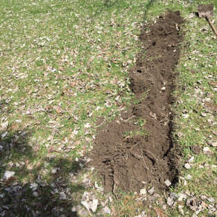 We took on a new project this spring, preparing a first-ever vermitrench at the farm. The idea is to dig a trench (about 18 inches across) that will have a "false bottom" with sticks and brushy material, so the worms won't drown if it collects some rainwater at the bottom. Then there is a layer of bedding and food, followed by more bedding and a cover layer. The worms will be able to process a tremendous amount of kitchen scraps in such a system, and anything you plant nearby will see a boost from the worm activity.